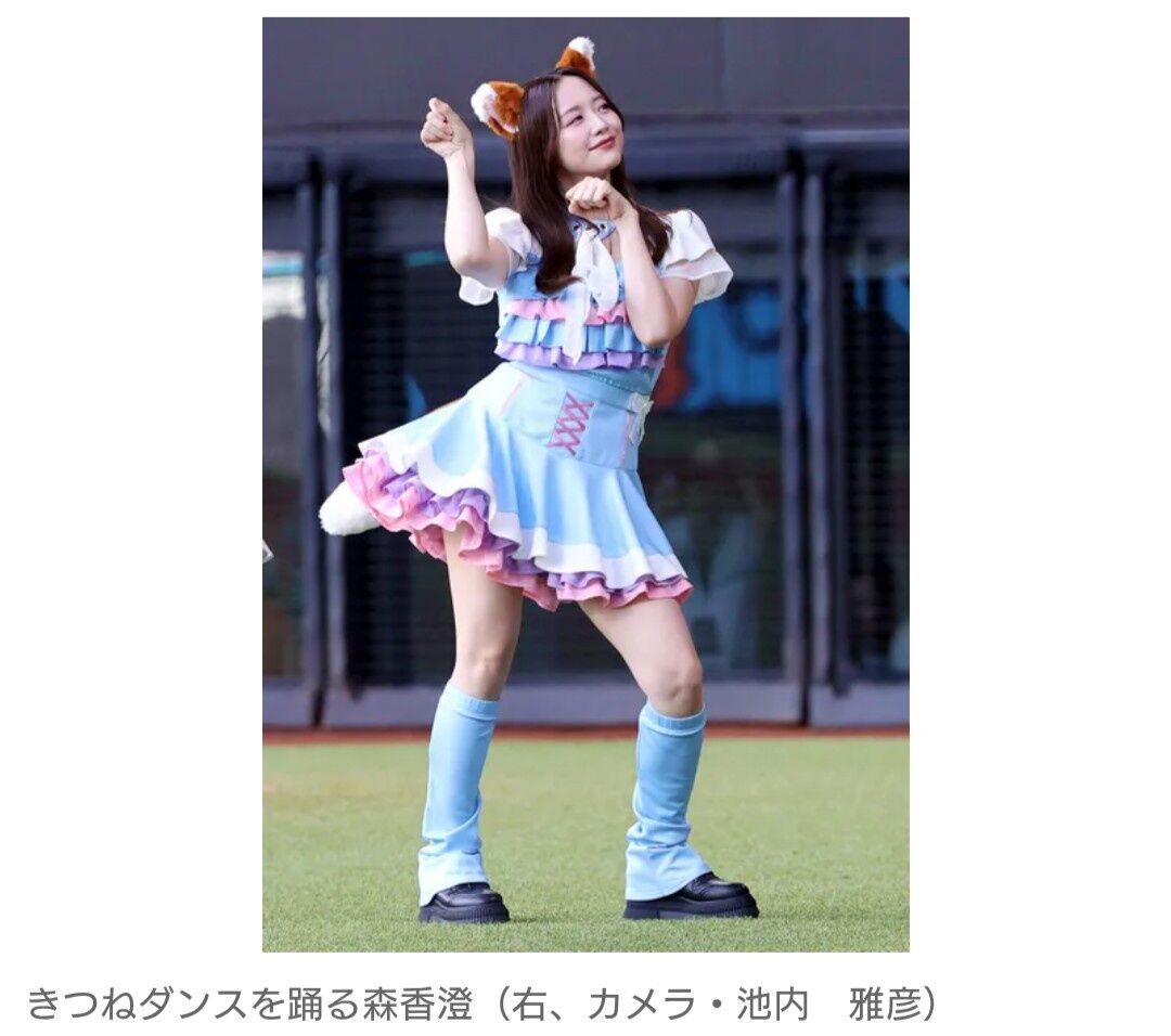 森香澄、きつねダンスで“あざとさ全開”美脚チラリ カチューシャと尻尾つけた姿に場内大歓声…エスコンに登場